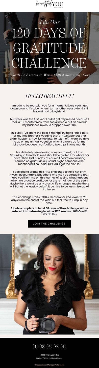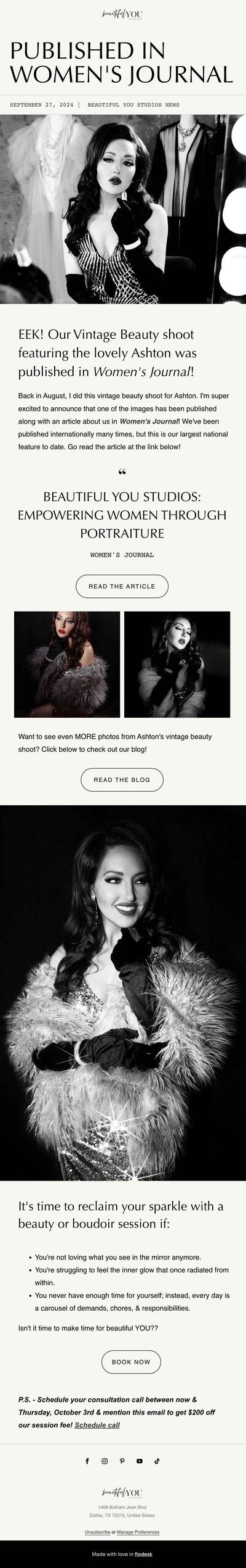 As the founder of Beautiful You Studios, I built and scaled a nationally recognized brand from the ground up, generating $1.3M+ in revenue.